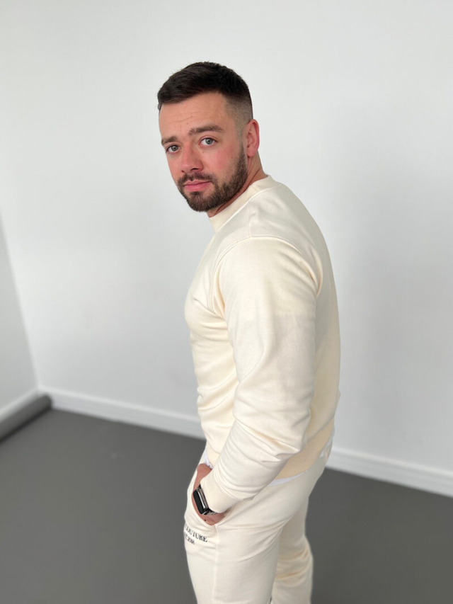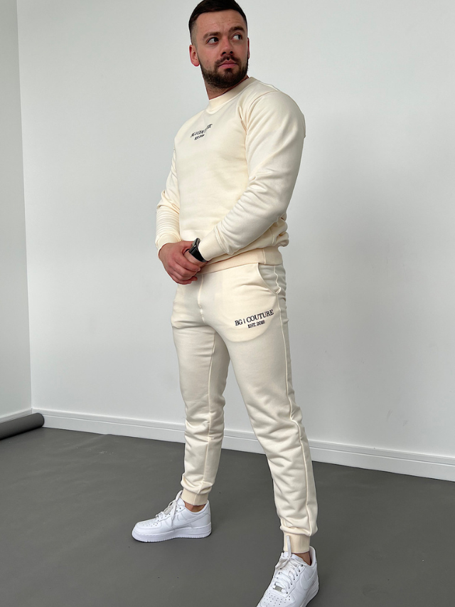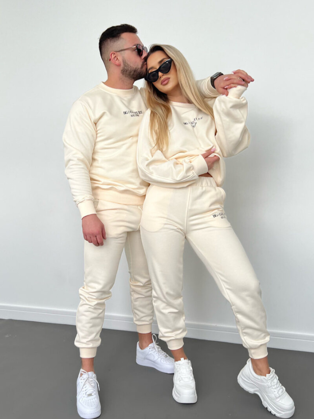Bluza oraz spodnie ozdobione czarnym logiem marki BG | COUTURE. Spodnie posiadają gumkę w pasie oraz sznurek od wewnętrznej strony. Jakość PREMIUM, Polska marka.