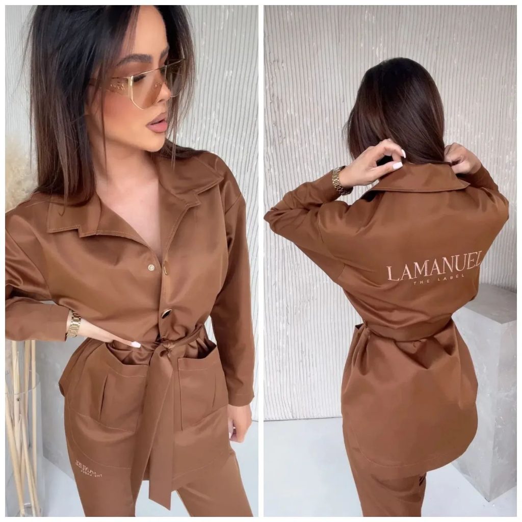 Posiada logo marki w złotym kolorze na froncie, jest miękki i przyjemny w dotyku.