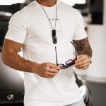 Klasyczny, okrągły dekolt, krótki rękaw i prosty dół